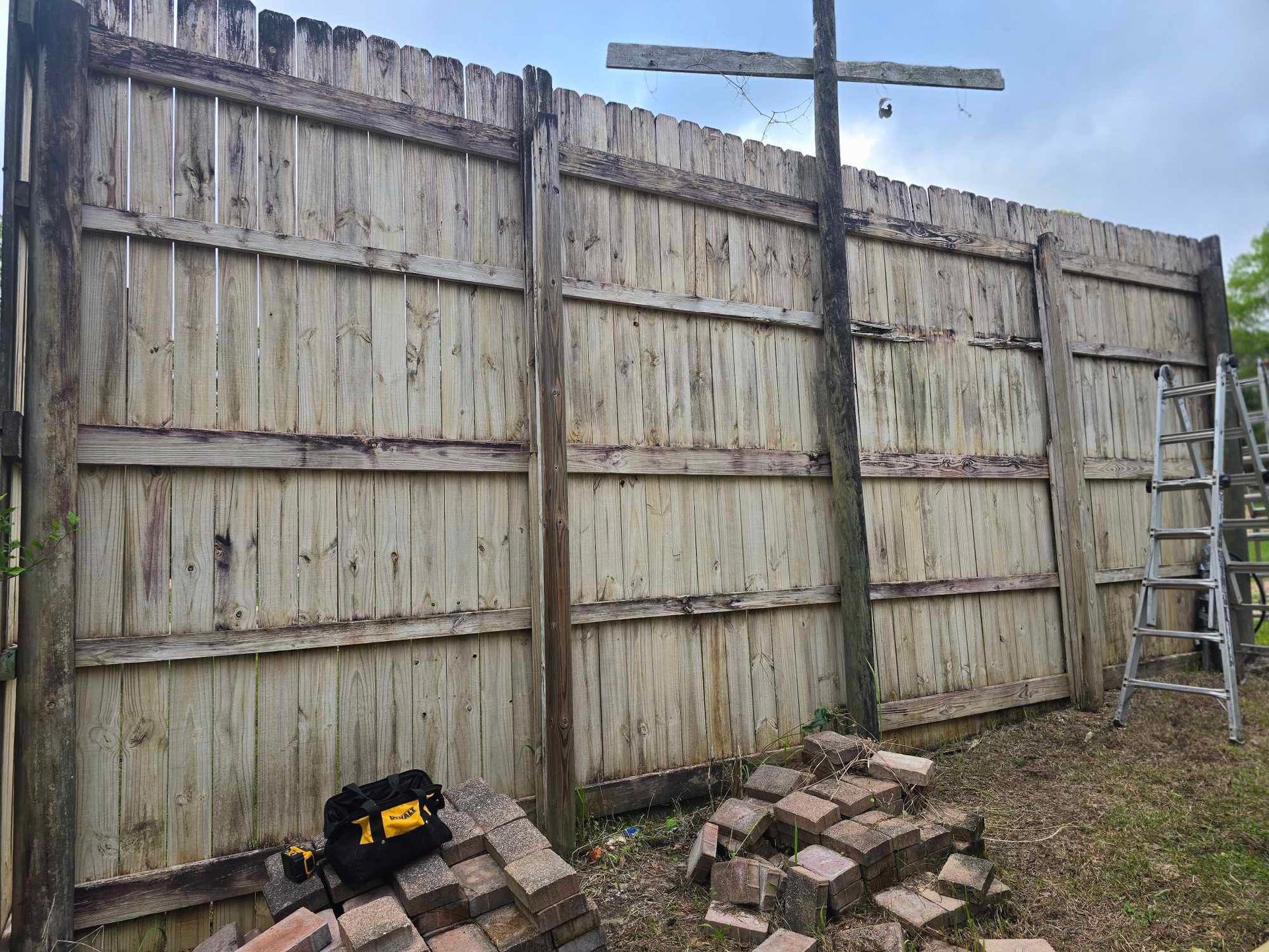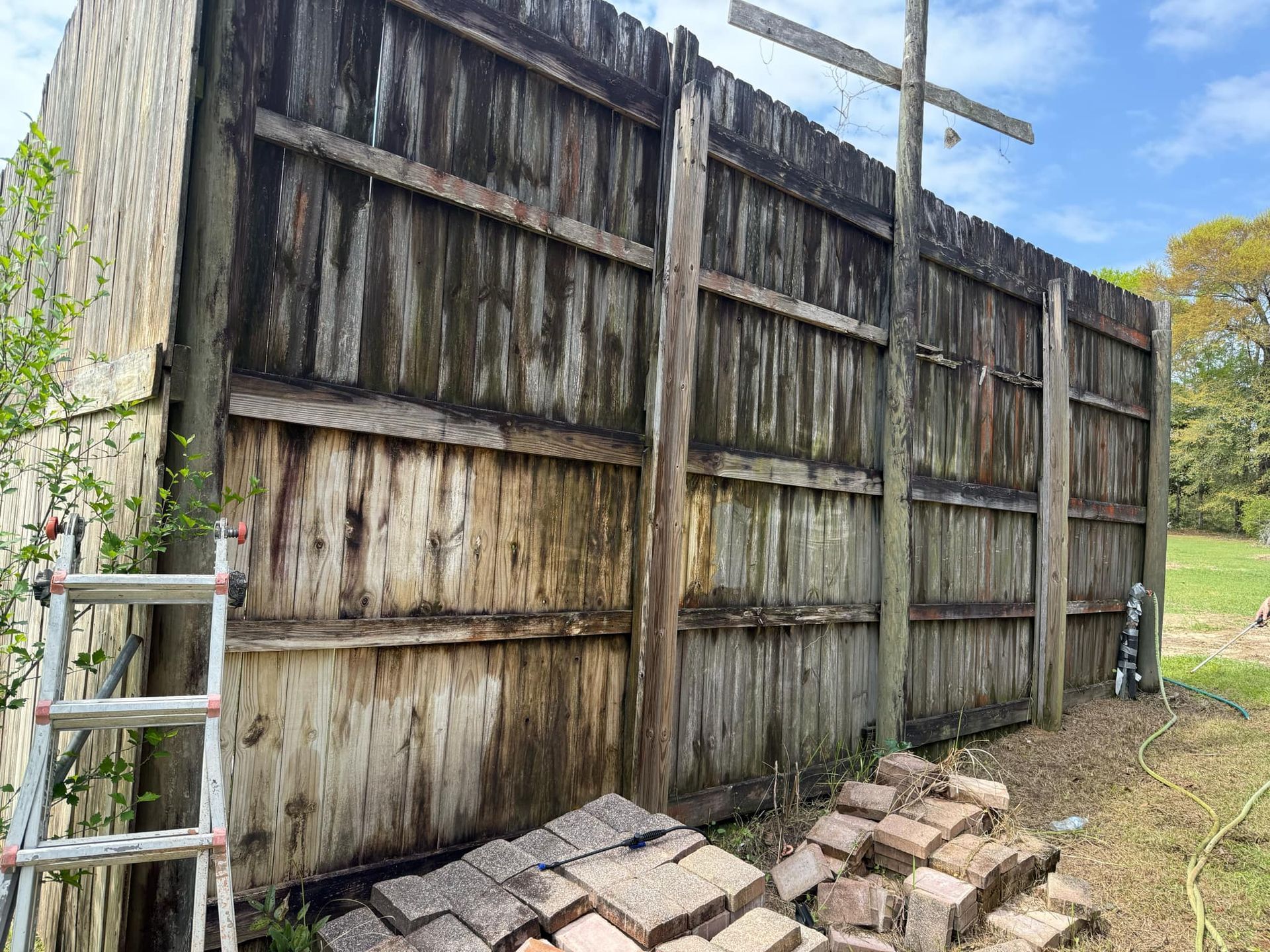Before and During of a Current Project. Twelve Foot Wind Breaker Fence Restoration